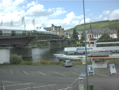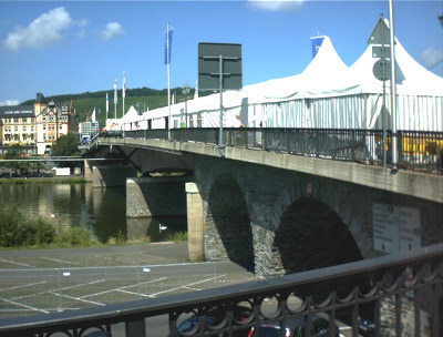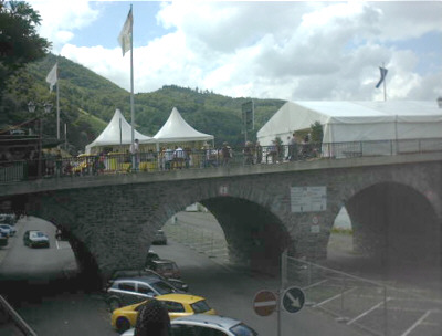2005 hatte " Bernkastel und Kues Geburtstag. 100 Jahre war es her , dass die heutige Hauptstadt der Mittelmosel vereint wurde. Zur Erinnerung : am 09.03.1905 Die amtliche Bestätigung der Eingemeindung ist heute hier eingetroffen."Des Königs Majestät haben durch Allerhöchsten Erlass vom 22.Februar des Jahres zu genehmigen geruht , dass die Landgemeinde Cues im Kreise Berncastel zum 1.April des Jahres der Stadtgemeinde Berncastel in demselben Kreise einverleibt wird , und diese Stadtgemeinde von dem genannten Tage an , den Namen " Berncastel-Cues " führt. Berncastel , den 8.März 1905.Der Königliche Landrat : Freiherr von Hammerstein" . 02.04.1905 Amtliche Bekanntmachung zu den Stadtverordnetenwahlen für die Stadt Berncastel-Cues am 08.April 1905. Die Zahl der Stadtverordneten beträgt für die durch die Eingemeindung der Gemeinde Cues vom 1.April ab vergrößerte Stadt 18 , 10 für den Wahlbezirk Berncastel und 8. für den Wahlbezirk Cues. Es gilt das Dreiklassenwahlrecht. Gewählt wurde am Samstag , den 08.April 1905 im Rathaus.Jeder Wähler muß dem Wahlvorsteher mündlich zu Protokoll erklären , wem er seine Stimme geben will. 2005 hatte "Bernkastel-Kues" Geburtstag. 100 Jahre ist es nun her , dass die heutige Hauptstadt der Mittelmosel vereint wurde. Vom 08.07.-10.07.2005 wurde ein einmaliges Stadt- und Jubiläumsfest gefeiert.Hierzu wurde die Brücke , die Bernkastel und Kues mit einander verbindet auf eine Länge von 200 Metern überdacht. Bernkastel-Kues hatte somit ein 200 Meter langes Festzelt auf der Brücke aufgebaut.Eine sehr originelle Idee , aber schauen Sie selbst.